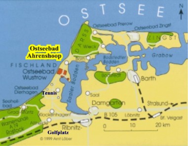Lageplans von Ahrenshoop an der Ostsee Alternativ von Hamburg: Von Berlin Bahn in Ribnitz-Damgarten, informieren Sie sich bitte auch über die von der Bundesbahn geschaffene Möglichkeit des Reisezuges (besonders interessant aus Süddeutschland). Mit öffentlichen Verkehrsmitteln, Bahnhof Ribnitz-Damgarten West, Anschlussbus nach Ahrenshoop/Mitte. Bus u. Bahnverbindungen 03821-25 25 Flughafen Rostock-Laage © 2000 Bschorer |